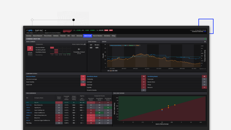 For example, track our unique StarMine Text Mining Credit Risk Model, providing an early indication of changing business conditions by evaluating the language in news, conference call transcripts, and filings.